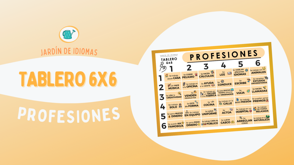 TABLERO 6×6 con temática de PROFESIONES para clases de español como lengua extranjera (ELE).